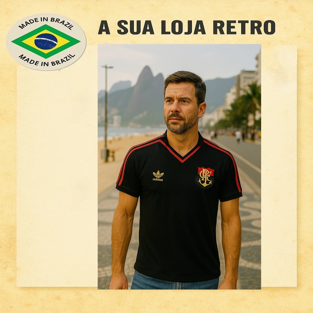 Camisa retrô do Flamengo, década de 70, usada no Maracanã. Tecido de alta qualidade, gola V, escudo e logomarca bordados. Modelo manga curta . Marca Adidas, padrão da futebol retrô. Produção em 16 dias úteis, entrega conforme prazo dos correios.