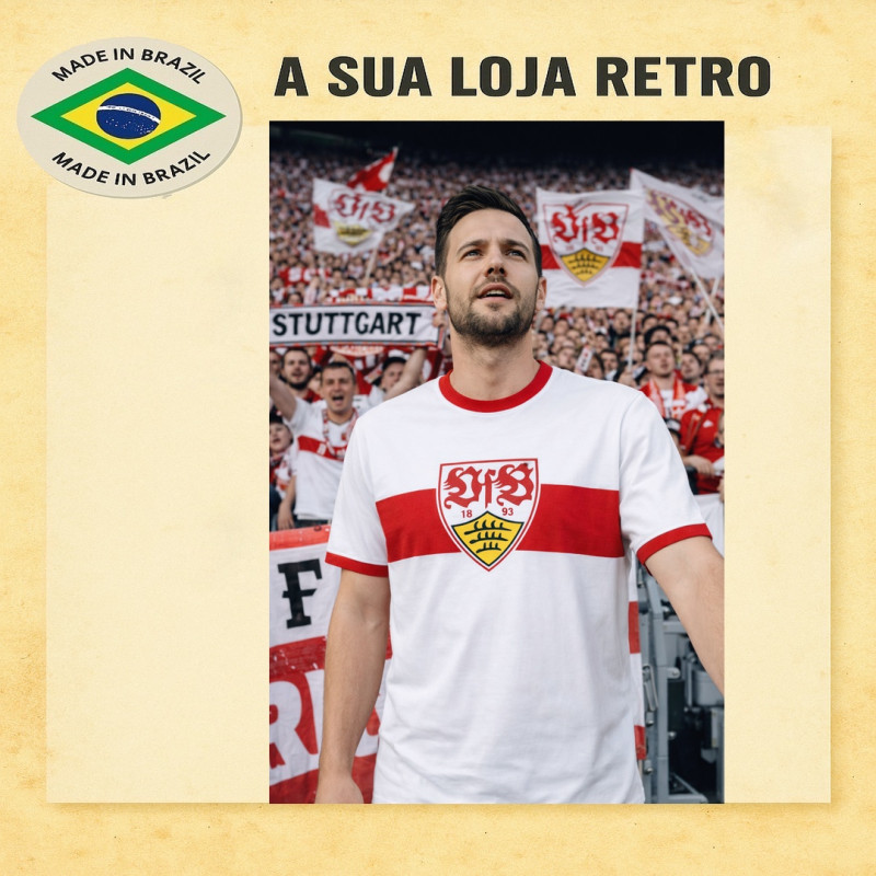 Camisa retrô Stuttgart branca gola careca - ALE