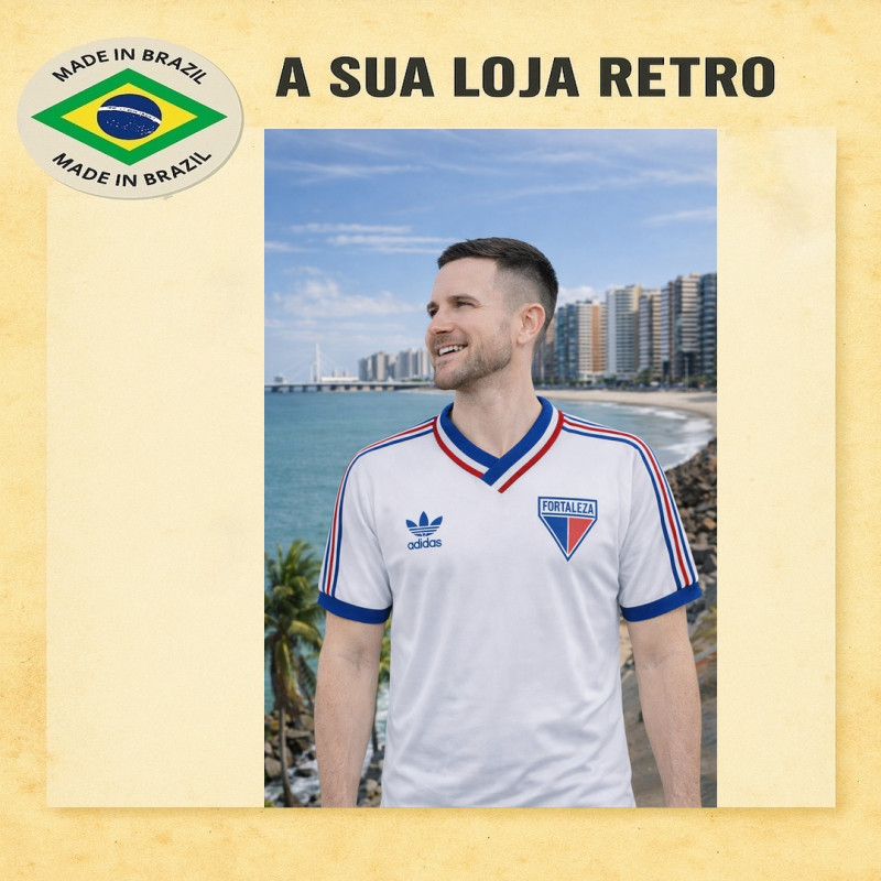 História do Campeonato Cearense – Camisa antiga do Fortaleza, década de 80, símbolo do manto sagrado, com jogos no Castelão. Marca Adidas, com tecido de alta qualidade, escudo e logomarca bordados, gola V, padrão futebol retrô, garantia de satisfação. Confecção em 16 dias úteis e entrega conforme prazo dos Correios.