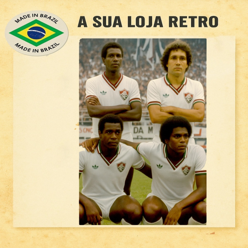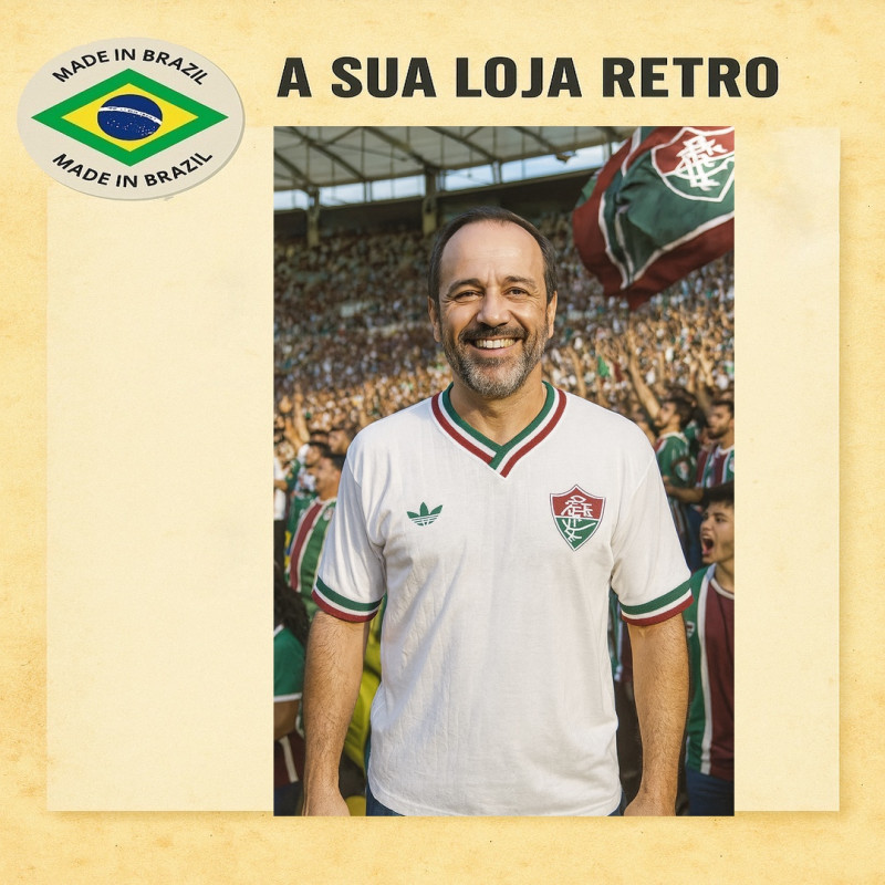 Camisa clássica do Fluminense de 1980, símbolo do Campeonato Carioca e do Maracanã nos anos 80. Modelo Adidas com gola V, escudo e logomarca bordados. Tecido de alta qualidade, manga curta e acabamento fiel à época. Qualidade da futebol retrô. Confecção em 16 dias úteis. Entrega via Correios