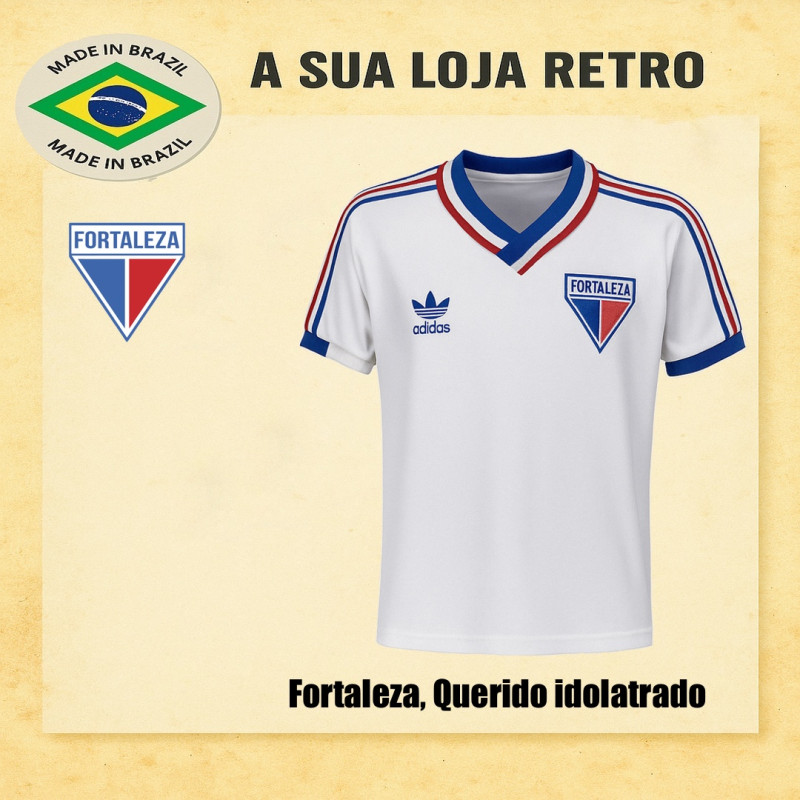 História do Campeonato Cearense – Camisa antiga do Fortaleza, década de 80, símbolo do manto sagrado, com jogos no Castelão. Marca Adidas, com tecido de alta qualidade, escudo e logomarca bordados, gola V, padrão futebol retrô, garantia de satisfação. Confecção em 16 dias úteis e entrega conforme prazo dos Correios.