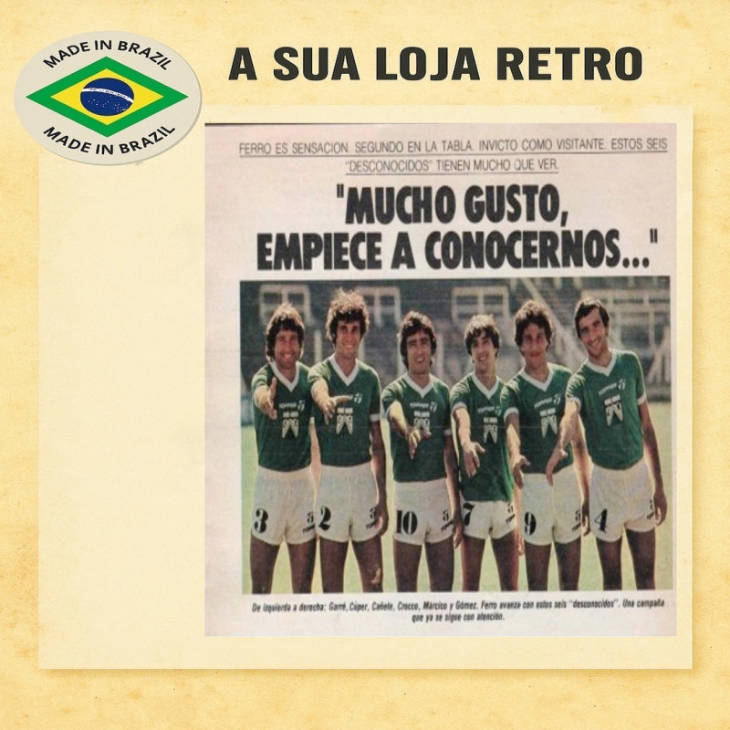 Camisa retrô do Ferro Carril Oeste, inspirada nos anos 80. Modelo com gola V, manga curta, escudo e logomarca silkados. Tecido de alta qualidade com padrão futebol retrô. Fundado em 1904, o clube manda seus jogos no estádio Ricardo. Confecção: 16 dias úteis.