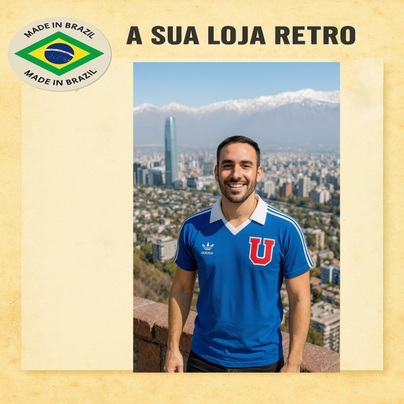 Camisa retrô do Universidad do Chile, ícone da década de 80. Modelo clássico usado no Estádio Nacional, do clube fundado em 1927. Tecido de alta qualidade, gola polo, escudo e logomarca bordados. Padrão da Futebol Retrô. Confecção em 16 dias úteis. Entrega via Correios.