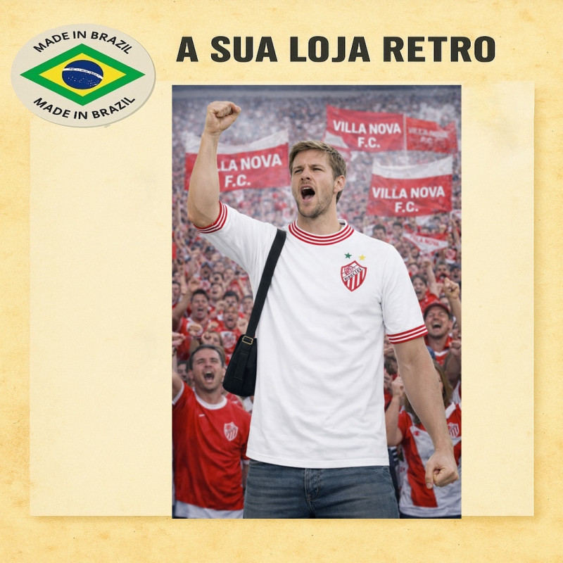 Camisa clássica do Villa Nova, década de 70, usada no Estádio Castor Cifuentes. Fundado em 1908, o clube carrega tradição e paixão. Detalhes: tecido de alta qualidade, escudo bordado, gola careca, padrão futebol retrô, garantia de satisfação. Confecção em 16 dias úteis. Entrega via Correios.