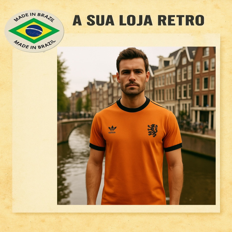 Camisa retrô da década de 80 com escudo e logo Adidas bordados. Gola V,...
