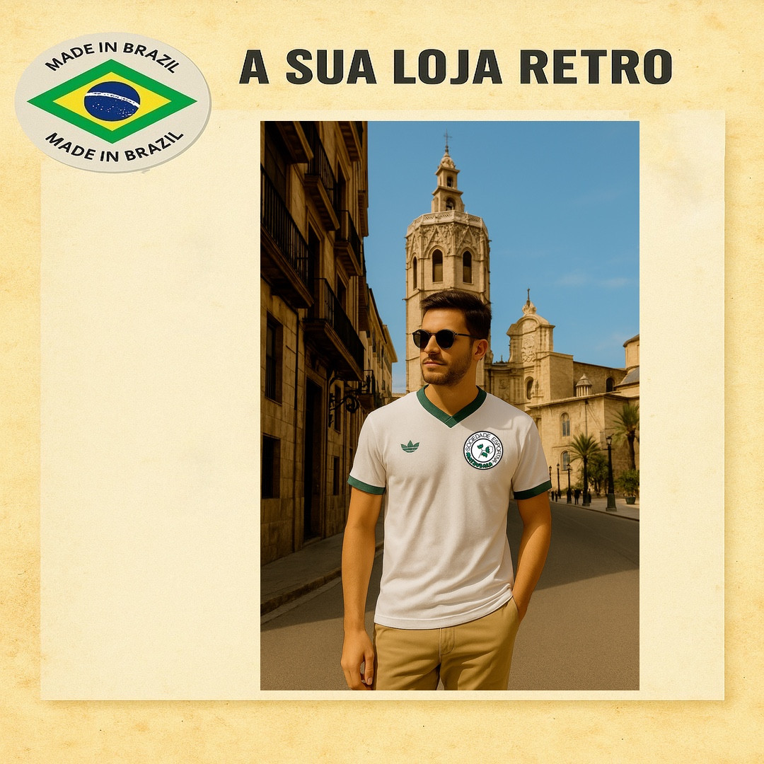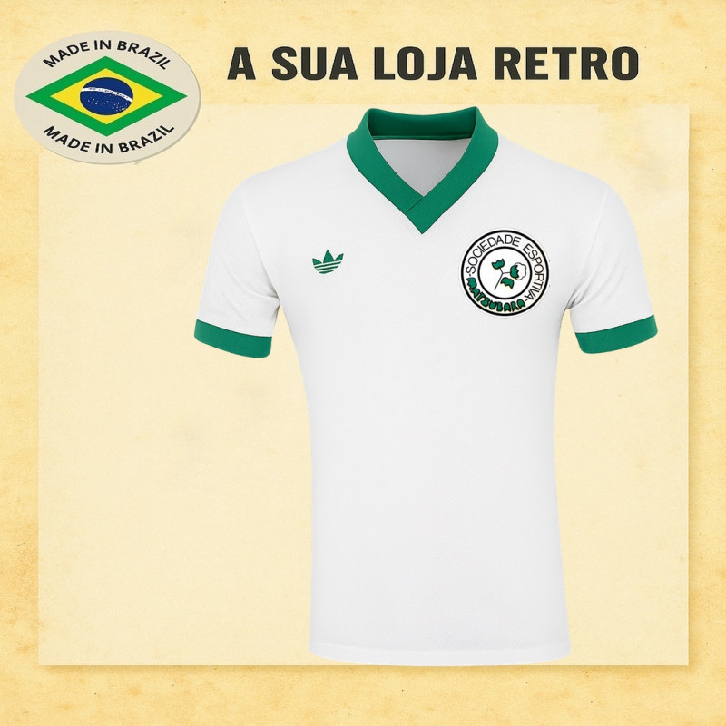 História do Matsubara – Camisa 1980 Camisa antiga do clube fundado em 16/12/1974, usada no Estádio Regional de Cambará. Modelo Adidas da década de 80. Tecido de alta qualidade, escudo e logomarca bordado, gola V, manga curta. Padrão futebol retrô. Confecção: 16 dias úteis. Entrega: prazo dos Correios.