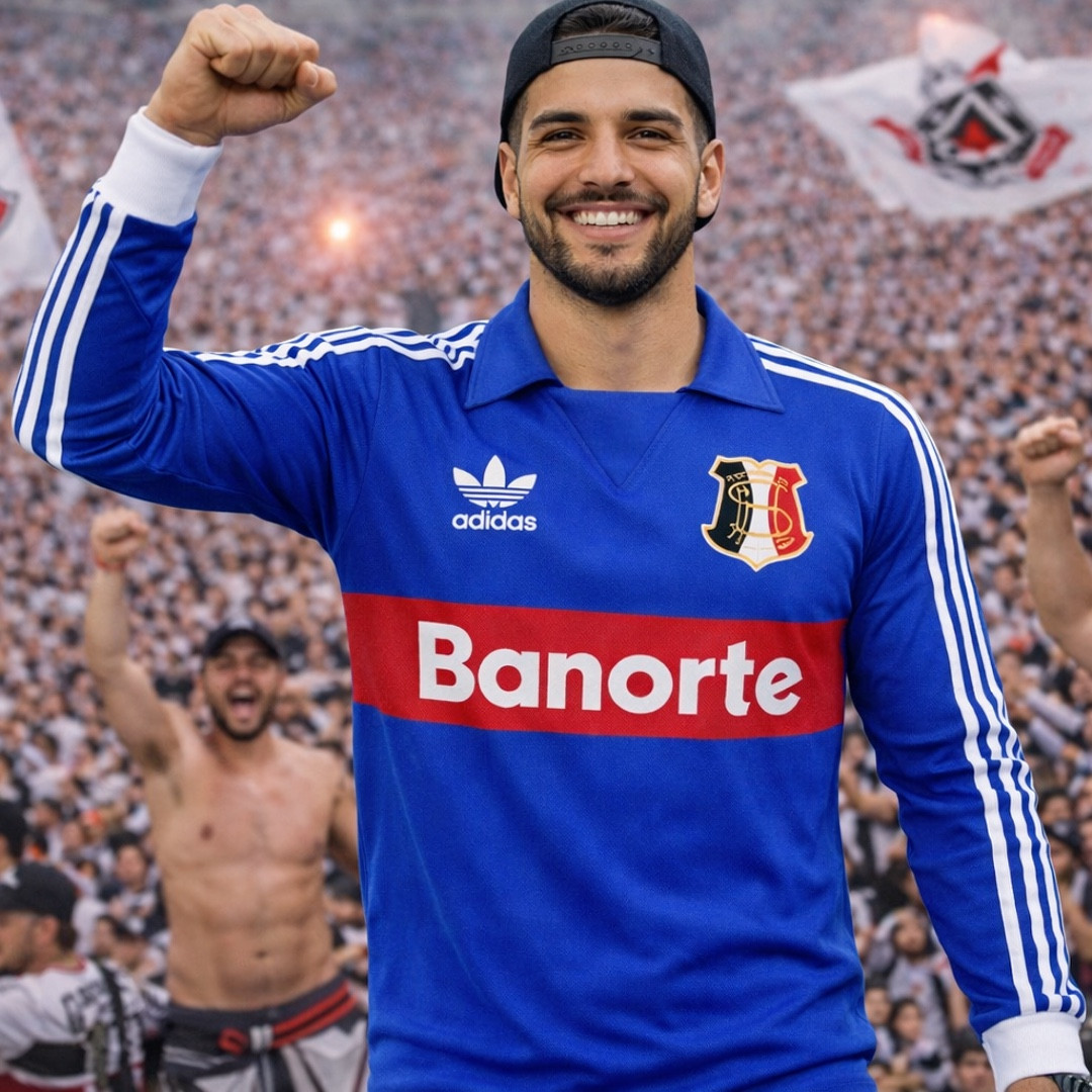 Camisa retrô com tecido de alta qualidade, escudo bordado e gola polo...