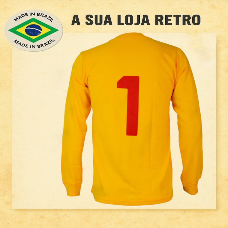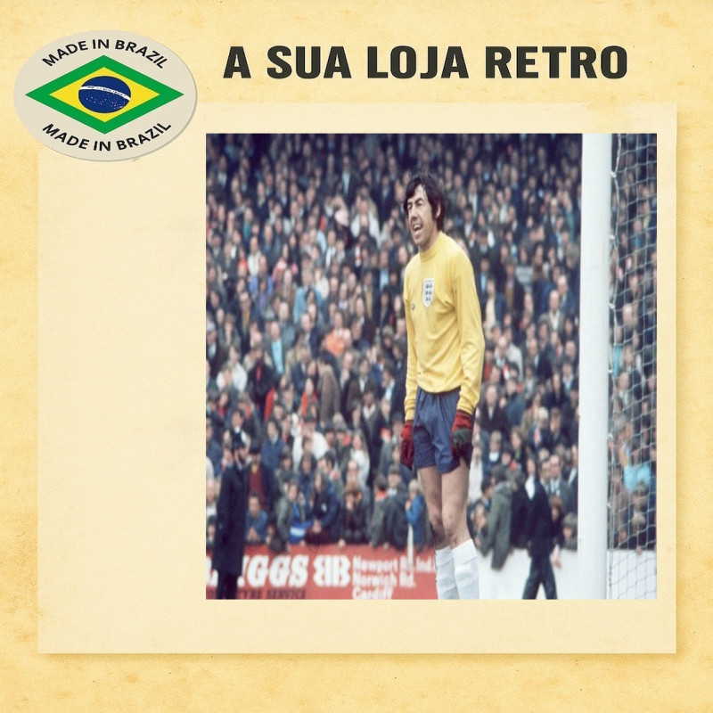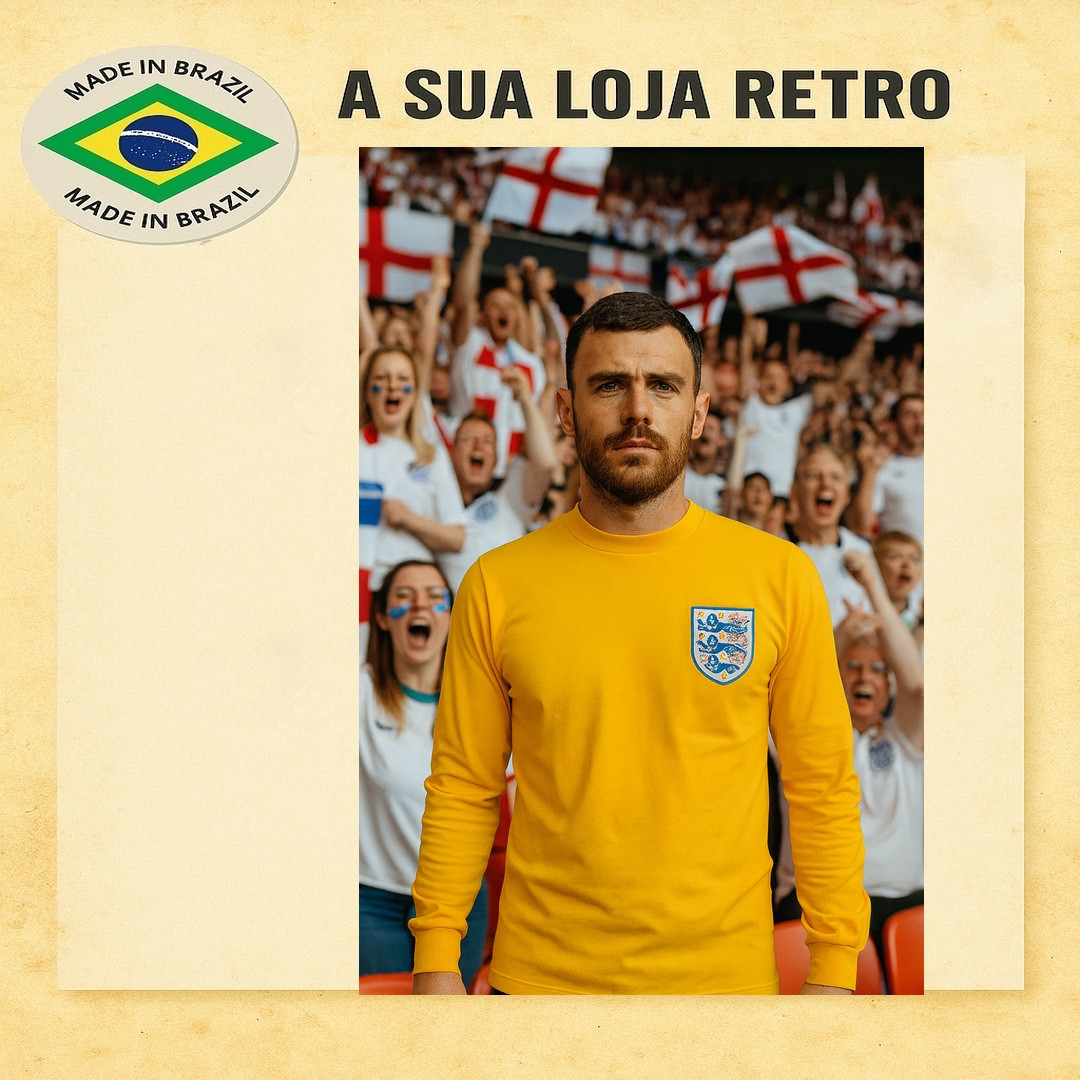 Camisa histórica da Seleção Inglesa usada na Copa do Mundo de 1966, década marcada pelo título inédito. Modelo clássico com gola careca e manga longa. Feita em tecido de alta qualidade, escudo bordado e acabamento fiel à época. Padrão de excelência da futebol retrô, perfeita para colecionadores e fãs do futebol clássico.Confecção 16 dias úteis - Entrega - Prazo dos correios