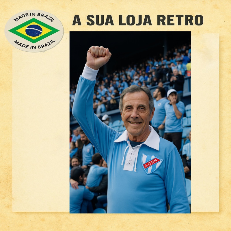 Camisa retrô com tecido de alta qualidade, escudo bordado e gola polo...
